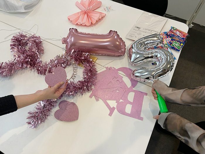 風船やお花、バナーなど、気づけばスタジオはすっかりお祝いモード。